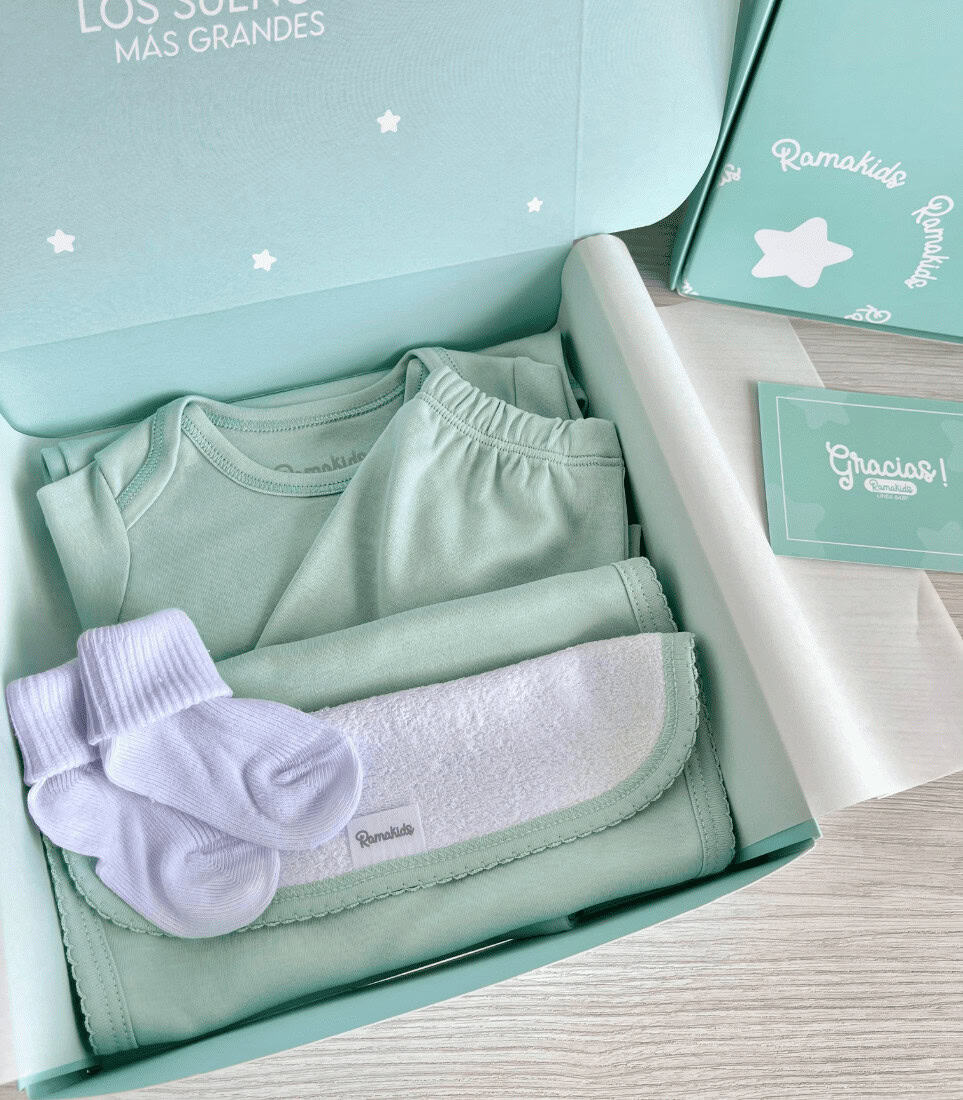 Incluye 1 body, 1 pantalón, 1 babita de hombro, 1 par de medias.